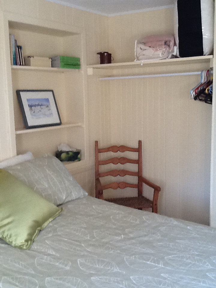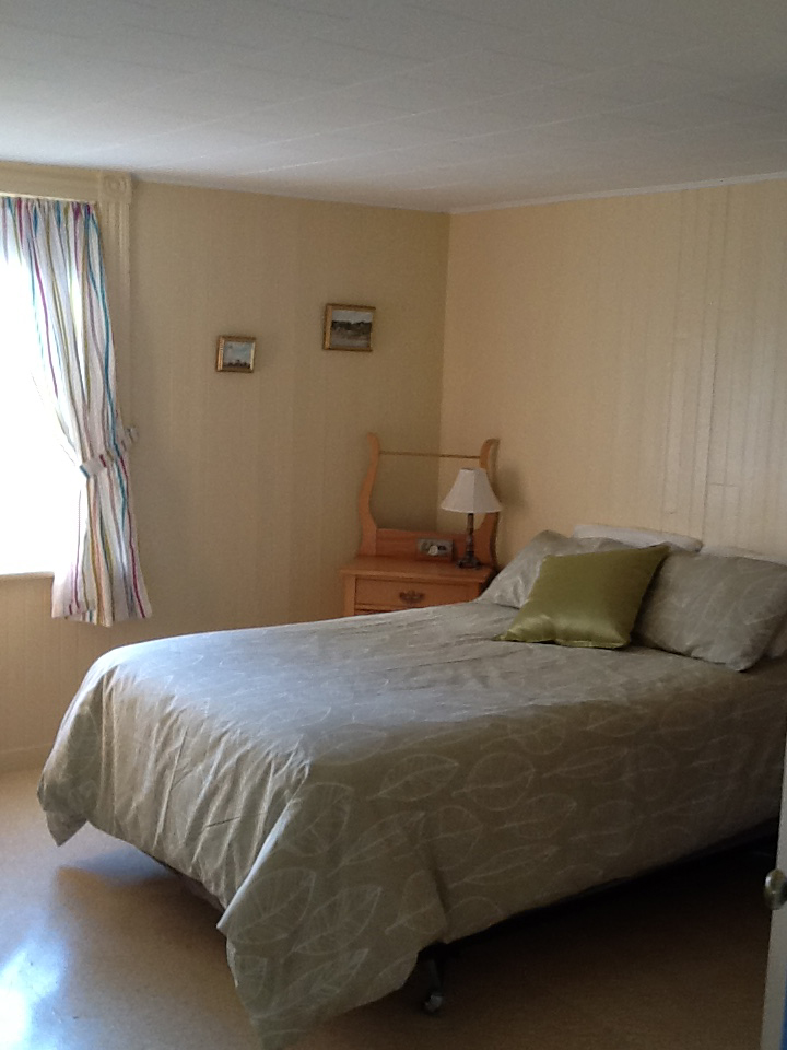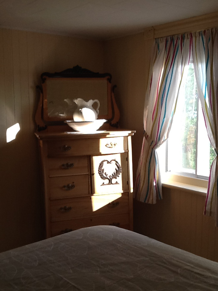 La chambre verte offre un lit double confortable ainsi qu'une commode et une chaise. De plus, toutes les chambres sont munies de couettes, d'oreillers et de couvertures supplémentaires au besoin.